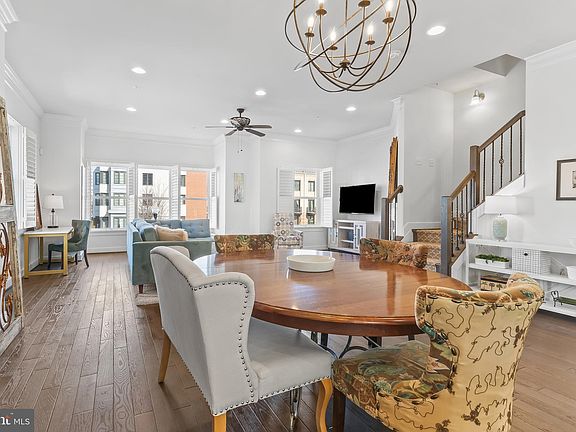 Welcome to this truly unique sun-drenched end townhome with a lush front fenced yard. This stately residence sits elegantly on a prime corner lot in the heart of Potomac Yards, right next to vibrant new retail and dining. Enjoy the convenience of being steps away from the the Metro, the new Inova Healthplex, Founding Farmers Restaurant and so much more, with National Airport and National Landing (Amazon HQ) less than 3 miles away and DC only 6 miles out. Spanning over 3300 sq ft, this meticulously maintained homes features 3 inviting decks and a gated grassy front yard. With 3/4 Bedrooms each with their own ensuite baths plus an powder room and an expansive 2 car garage with room for storage. Handicapped accessible with a large main level bedroom and full bath. Inside, freshly painted neutral tones and medium oak hardwood flooring create a bright, modern ambiance. The chef's kitchen with center island steps out to grilling deck and seamlessly flows into the dining and family rooms with cozy fireplace and 10 ft ceilings. On the top level, a second fireplace enhances the space leading to an outdoor deck ideal for entertaining large groups. The primary suite even boasts its own deck, perfect for enjoying a refreshingly morning breeze.