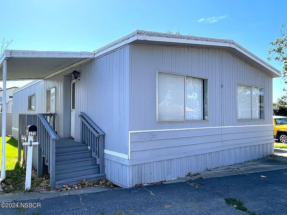Here's a great opportunity to have a piece of affordable real estate on the Central Coast. This is a senior park for residents 55 years or older. Located on an end unit in the Mountain View Mobile Estates with a private driveway. This home has a spacious feel to it and was recently painted. There is laundry room inside and the appliances will stay. Contact your REALTOR today for a private showing. All homeowners must be approved by park management.