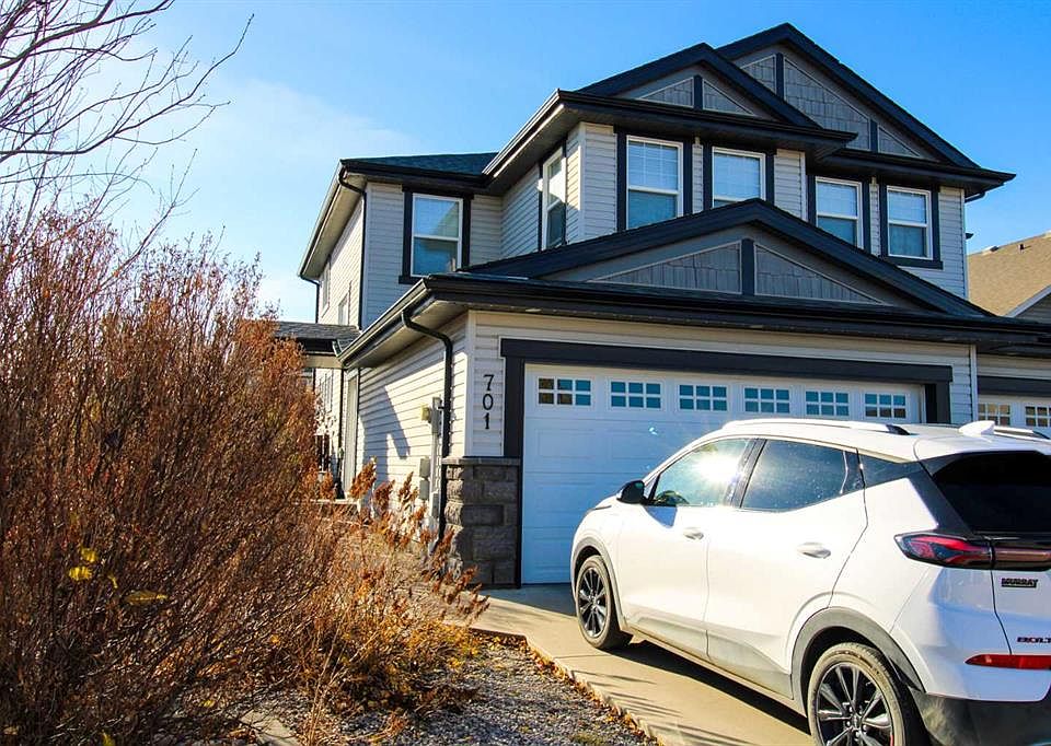 Welcome to this beautiful 4-bedroom, 3.5-bathroom half duplex, perfectly blending modern design with thoughtful details. Situated on a corner lot in a desirable and growing neighborhood, this home offers exceptional comfort and convenience — close to all amenities and new developments. Step inside to an open-concept main floor featuring a fully equipped kitchen with sleek finishes, seamlessly flowing into the bright living and dining areas — perfect for entertaining or relaxing with family. Upstairs, you’ll find two spacious bedrooms, a full bathroom, and a primary suite complete with a private ensuite and walk-in closet. The fully finished basement provides additional living space, a fourth bedroom, another full bathroom, and convenient laundry access. Outside, enjoy your large backyard with a private putting green(!), and garden area, ideal for both fun and relaxation. The home also features custom exterior lighting, underground sprinklers, and central air conditioning for year-round comfort. The attached double garage offers plenty of space and includes a 240-amp electrical service—perfect for EV charging or workshop needs. This property truly has it all — modern style, functional design, and outdoor living that stands out.