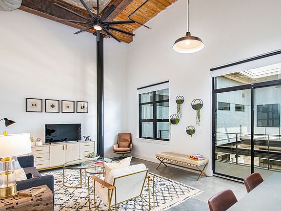 - Exterior features: Barbecue, Bocce Court, Electric Car Charging Stations, Expansive Historic Windows, Fitness Room & Yoga Studio, Frameless Glass Showers, GE Stainless Steel Appliances, Granite Countertops, Keyless Entry, Original, Painted Brick Walls, Package Receiving, Pet Park, Private & Semi-Private Offices & Conference Rooms, Private Balconies, Patios, & Terraces*, Quality Cabinetry, Soaring 14 to 20-Foot Exposed Wood Ceilings, TV Lounge, Two-Story Floor Plans*