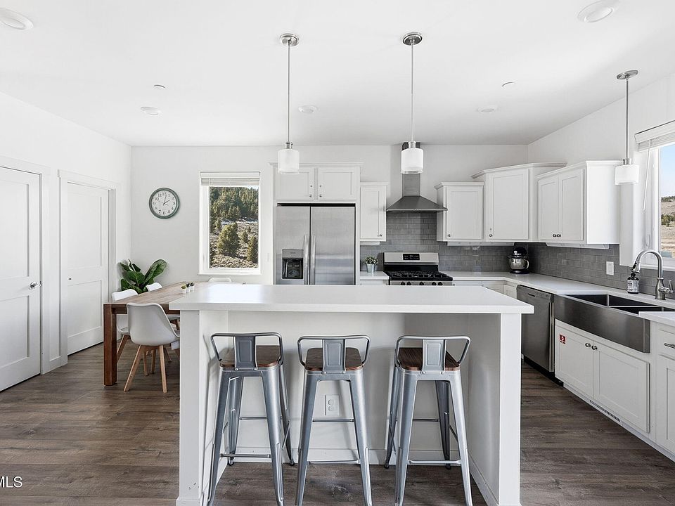 Wake up to sweeping mountain views and end your day with a soak in your private hot tub—this 3-bed, 2.5-bath end-unit townhome is the perfect mountain getaway. Just a short drive to Winter Park Resort, it's your basecamp for skiing, biking, and year-round mountain adventure. The open-concept main level offers high ceilings, durable vinyl plank floors, a cozy gas fireplace, and a modern kitchen with white cabinetry, subway tile backsplash, stainless steel farmhouse sink, gas stove, and a quartz island with seating. A large deck extends your living space into the alpine air with mountain vistas. Upstairs, three bedrooms plus a dedicated office capture mountain scenery. The private primary suite includes an ensuite with quartz counters, double sinks, a walk-in shower with subway tile, and a western-facing deck for sunset relaxation. The walk-out basement adds flexibility with a rough-in for a future bath, patio access, and hot tub. Fully furnishedincluding linens, kitchen items, washer/dryer, and appliancesthis low-maintenance, lock-and-leave townhome also features smart home upgrades (remote HVAC thermostats, security cameras, and entrance lock) plus a one-car garage. With short-term rental history and an STR license already secured, this property is both a lifestyle getaway and income-producing investment. And when adventure calls whether it's skiing, biking, or exploring trails, this is your basecamp for every season in the Rockies.