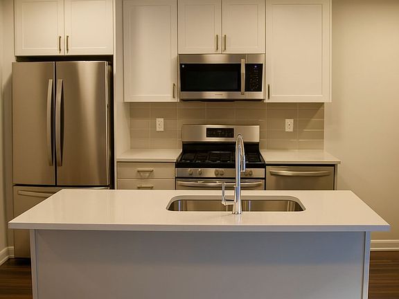 Bright lower unitWelcoming foyerCeiling-mounted electric heaterOpen-concept main levelModern kitchenBrand-new stainless steel appliancesWhite quartz countertops
