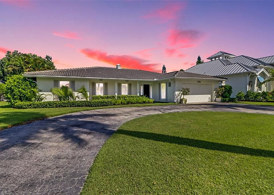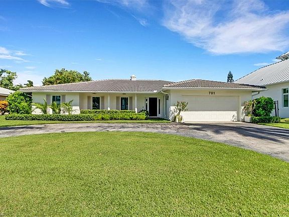 POOL HOME! NO FLOODING! X500 ZONE! NEW TILE ROOF (2020)! NEW HURRICANE IMPACT WINDOWS AND DOORS! ALL NEW APPLIANCES! TRUE WOOD FLOORING AND UPDATED ELECTRICAL! Welcome to your dream home in The Moorings. This stunning, remodeled one-story pool home, boasts a modern design and an array of luxurious features. Located on prestigious Harbour Drive, this property boasts 3 bedrooms, 2 bathrooms, and a spacious 2-car garage within 2,039 square feet of thoughtfully designed living space. Situated in Flood Zone X500 at a 14-foot elevation, the property ensures safety from flooding and storm surge, allowing for peace of mind. Upon arrival, you'll be welcomed by a circular driveway and a beautifully landscaped exterior that exudes curb appeal. The newly installed impact-resistant windows and doors offer storm protection and enhanced security, while the freshly painted interior and exterior provide a modern touch. The home boasts an array of recent upgrades, including a New tile roof, updated electrical panel, hardwired smoke detectors, French doors, a 50-gallon electric water heater and updated Bathrooms featuring Ann Sacks tile & Schumacher wall coverings. The inviting heated pool, fully caged and recently resurfaced, is perfect for relaxation and entertainment. Inside, enjoy the elegance of wide plank wood flooring, solid core interior doors and spacious closets. A brand new suite of stainless steel appliances, including a washer and dryer to complete the home. Just 0.30 miles from Naples' pristine beaches, residents can opt for membership to the private beach club for exclusive access. The property is also adjacent to the Moorings Golf and Country Club, perfect for golf enthusiasts. Enjoy outdoor activities along the sandy shores and stunning sunsets over the Naples skyline. This prime location offers close proximity to the vibrant Waterside Shoppes, Venetian Village, and the lively 5th Avenue shopping district, providing access to upscale dining, entertainment, and beautiful waterfront views. Whether you are looking for a permanent residence, vacation home, or investment property, this home presents limitless potential. Make this dream home yours today!