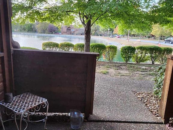 WATERFRONT HOME @ Chapter One ~ 2+ BR/2.5 Baths/2-Car Garage/2 Covered Patios/Covered Balcony/End Unit/AND peaceful tranquility of living near water! Fantastic entry to this beautifully updated home via covered patio. Great Rm w/soaring vault, WB fireplace (GORGEOUS reclaimed mantel), big windows & wood-look tile floors. Sep DR w/beautiful chandelier & slider to covered patio. Panel-style vertical blinds here & at sitting room. Kitchen cabinets w/crown molding are updated w/artisan treatment, pulls & topped w/granite! Under/Over Cabinet lighting. Pretty backsplash. Stacked stone backed breakfast bar. Sitting rm opens to covered porch. Master BR is an OASIS: New slider opens to covered balcony-enjoy sights & sounds of lake from here. Vaulted ceilings. Walk-in closet. Huge Mbath w/2x sinks & shower. 2nd BR has mirrored closets & vaulted ceiling. 3rd poss. BR w/big closet & built-in shelving. 2-Car attached garage. $15k in new Pella windows! Come live your best life right here, right now!