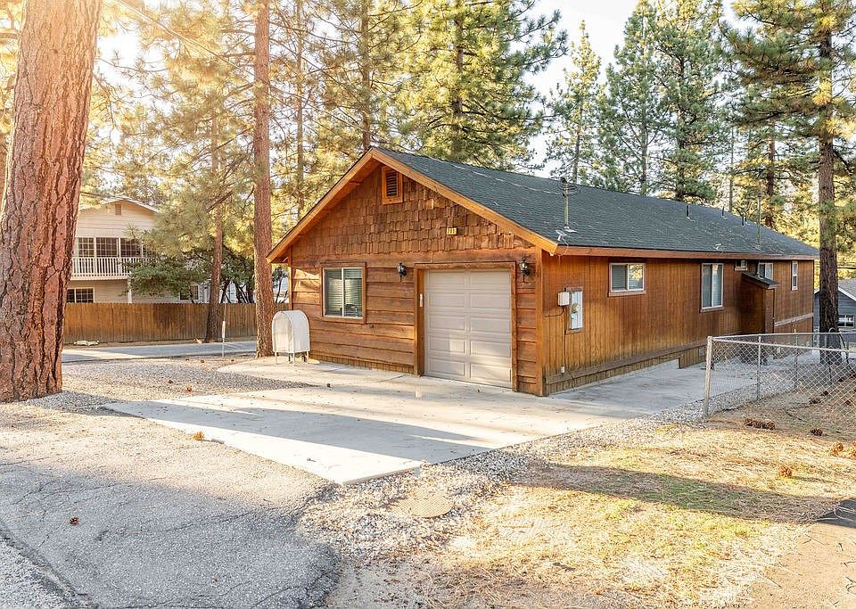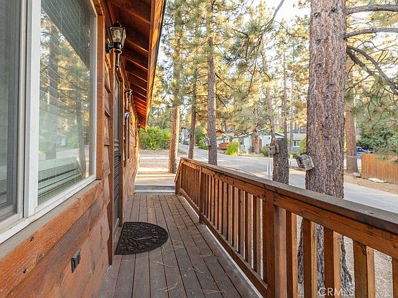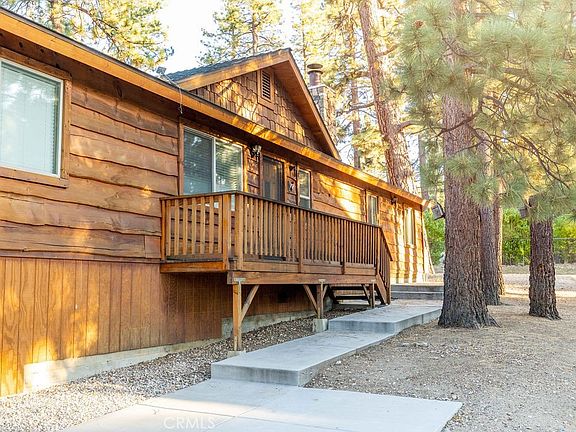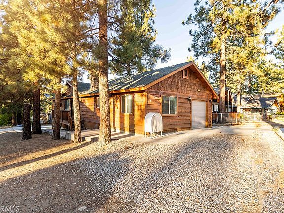 Pride of ownership shines throughout this beautifully maintained, single-story cabin built in 2007 and cherished by its original owner. Tucked among towering pines on a level corner lot near Maple Hill trails, this immaculate 3-bedroom, 2-bath home offers the perfect blend of mountain charm, comfort, and convenience. Step inside and be greeted by a light-filled open floor plan with tongue-and-groove knotty pine ceilings, warm wood finishes, and a cozy rock fireplace that anchors the spacious living area, ideal for relaxing after a day on the slopes or trails. The thoughtfully designed kitchen features solid wood cabinetry, granite-style counters, and modern appliances, seamlessly connecting to the dining area for effortless entertaining. Vaulted ceilings and large dual-pane windows bring in natural light and views of the surrounding trees, creating a sense of calm and connection to nature. The primary suite offers a peaceful retreat with its own private bath, while two additional bedrooms and a second full bathroom provide plenty of space for family and guests. The separate laundry room, attached one-car garage, and ample off-street parking—including space for a boat or small RV—add everyday practicality to this turnkey home. Outside, enjoy the mountain air from your covered front porch or stroll the quiet, paved neighborhood lined with mature pines. Whether you’re searching for a full-time residence, a weekend getaway, or a smart investment property, this home checks every box. Located just minutes from Big Bear Lake, ski resorts, hiking and biking trails, and the village shops and restaurants.
