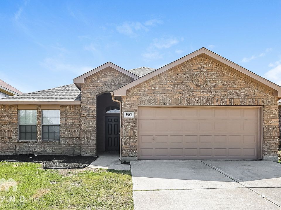 Welcome to 701 Kentucky Derby Lane, a charming 3-bedroom, 2-bathroom home with 1,580 square feet of comfortable living space, all conveniently on one floor. Step inside to an inviting living room, complete with a cozy decorative fireplace that adds a touch of warmth and charm. The well-appointed kitchen is a chef's delight, equipped with a full suite of stainless steel appliances, perfect for preparing meals. The main bedroom serves as a private retreat, featuring a generous walk-in closet and an attached bathroom. while two additional bedrooms share a full bath. The home also includes a dedicated laundry room with washer and dryer hookups and an attached two-car garage. Enjoy outdoor living on the private patio, an ideal space for relaxation and entertaining. This home is also a smart home, equipped with a smart lock, thermostat, hub, and motion sensors for modern living and peace of mind. This well-appointed property is ideally located with easy access to major roads like I-820 and Marine Creek Parkway,and local amenities. Schedule your tour today!