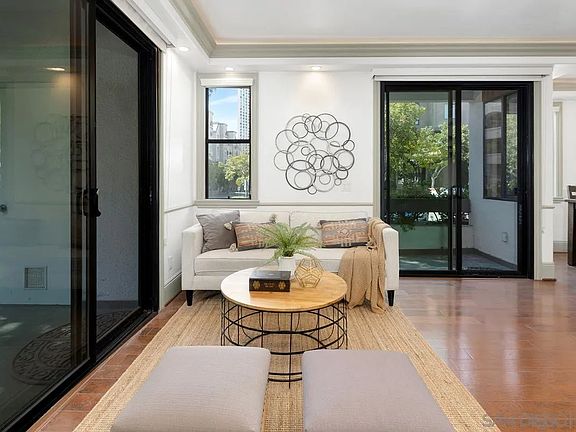 Reduced Price! STUNNING Move in ready single level move in ready home! No expense spared renovation includes brand new kitchen with custom made wood cabinets and beautiful solid surface countertops. All new appliances. Beautiful wood floors throughout and attention to detail at every turn. Incredible office with full builtins and private bar sink and build in high end refrigerator. Fully tiled bathroom conveniently located off the hallway. Also features 3 patios including one that overlooks Pantoja Park, one facing G Street, and another private patio facing the interior. A single parking spot is also located just steps away. Forced air heating, as well as a brand new high end tankless water heater round out the list of desired features. There are many more details to appreciate. Come see them in person!