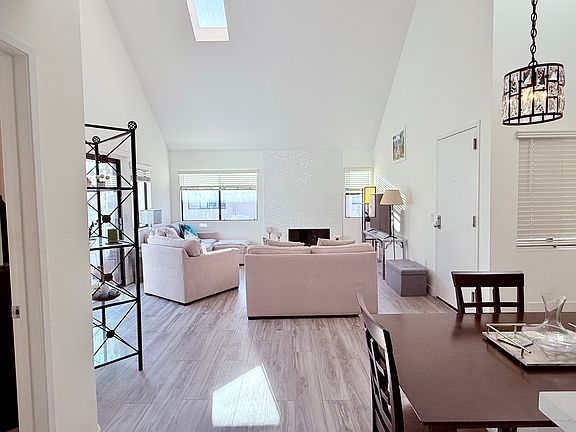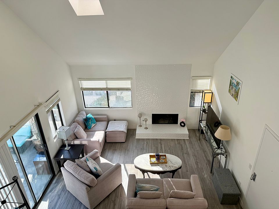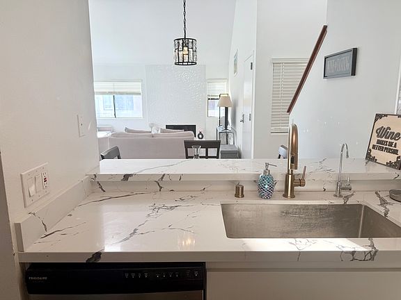 Stylish 1 bedroom + loft (optional 2nd BR), 2 bath townhouse in the charming Park Row community, the Marina District's only low-rise condos! This sun-filled home features vaulted ceilings, abundant natural light, in-unit laundry, and a private balcony with access from both masterbedroom and living room. The renovated kitchen boasts modern finishes and stainless steel appliances. The 2nd full bathroom is newly added in 2024 so all tilling, fixtures, and plumbing are all brand new throughout. Owner has replaced all carpeting with modern new flooring. New vanity in master bath. Unit has double paned windows and central air. Mediterranean architecture, lush landscaping, and Saltillo tile pathways create a serene village vibe throughout the complex. Complex includes a pool, jacuzzi and club house that can be rented for events. Parking space included in gated garage. 24 hour security on site.
