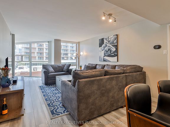 A rare find where style meets everyday practicality, this beautifully updated 2-bedroom + den, 2-bath residence spans over 1,040 sq. ft. in one of downtown Toronto's most dynamic neighbourhoods - the King West Entertainment District. The smart split-bedroom design ensures privacy and features a 4 pc washroom and large closet with custom built-in's in the primary bedroom and a 4 pc adjacent washroom to the second bedroom which includes a space saving Murphy bed. While the den and wall-to-wall east-facing windows bring in beautiful natural light, it is perfectly flexible as a larger dining room, office space or whatever you need it to be. The open-concept plan flows effortlessly, anchored by a modern kitchen with granite counters, stainless steel appliances, glass tile backsplash, and a breakfast bar ideal for casual meals or hosting. Recently refreshed, the home features neutral grey flooring and window blinds throughout, white contemporary cabinetry and tile accents, and smooth ceilings with recessed lighting a polished, move-in-ready aesthetic. An in-suite storage room adds everyday convenience. Unbeatable location with TTC at your door and the upcoming Ontario Line at King & Bathurst steps away. Enjoy walkable access to everyday essentials like Farm Boy, Loblaws, and the Toronto Public Library, along with nearby schools, playgrounds and dog parks, and daycares. Stroll to Stackt Market, The Well, Financial District, and the waterfront for dining, shopping, everyday conveniences and entertainment. This residence offers the perfect balance of modern updates, thoughtful design, and a vibrant downtown lifestyle. One owned parking spot included. The Summit Club offers resort-style shared amenities: indoor & outdoor pool, hot tub, gym, squash courts, private movie theatre, BBQs, library, Bike Storage, Car Wash, Internet, lush private garden with kids playground, and more. A rare mix of community and convenience in the heart of downtown Toronto.