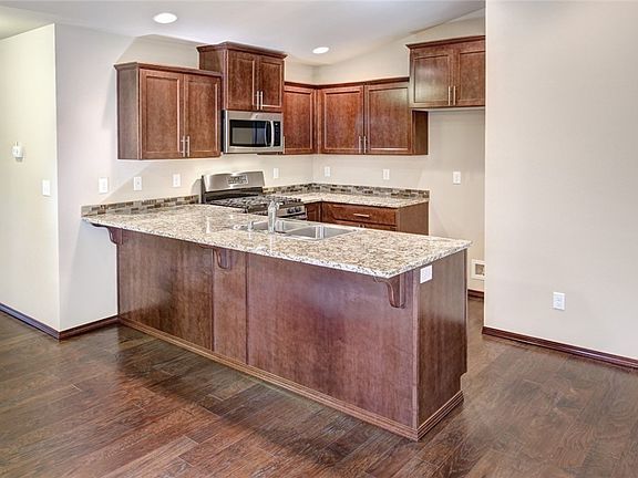 The Commons is part of Bellingham?s Trio at Cordata community. This home, the Arriva IV plan is a 1,325 SF three bedroom, one full and one 3/4 bath home with vaulted family room, cozy gas fireplace, island kitchen and master bedroom with a walk-in closet. Interior features include hardwood flooring, slab granite counters, maple cabinetry and stainless steel appliances. All homes in this community enjoy two car garages and fully landscaped yards.