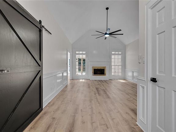 This stunningly modern ranch combines design with timeless comfort. Inside, soaring ceilings in the living room, primary suite, and office create bright, airy spaces filled with natural light. The chef’s kitchen features quartz countertops, soft-close cabinets, stainless appliances, and a seamless flow into the dining and living area perfect for entertaining. The oversized primary suite offers a tray ceiling, walk-in closet, and a spa-like bath with dual vanities, a frameless glass shower, and a freestanding soaking tub. A dedicated office overlooks the front lawn, while secondary bedrooms and baths are generously sized and beautifully updated. Step outside to a covered porch and expansive deck with pergola overlooking a private fenced backyard with mature trees—an ideal setting for relaxing or entertaining. With a large laundry room, 2-car garage, and a prime Marietta location close to schools, shopping, and dining, this move-in ready home truly has it all.