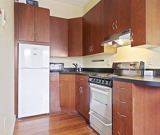Hardwood floorsRenovated kitchenStainless steel appliancesCherry cabinetsLarge windowsHigh ceilings