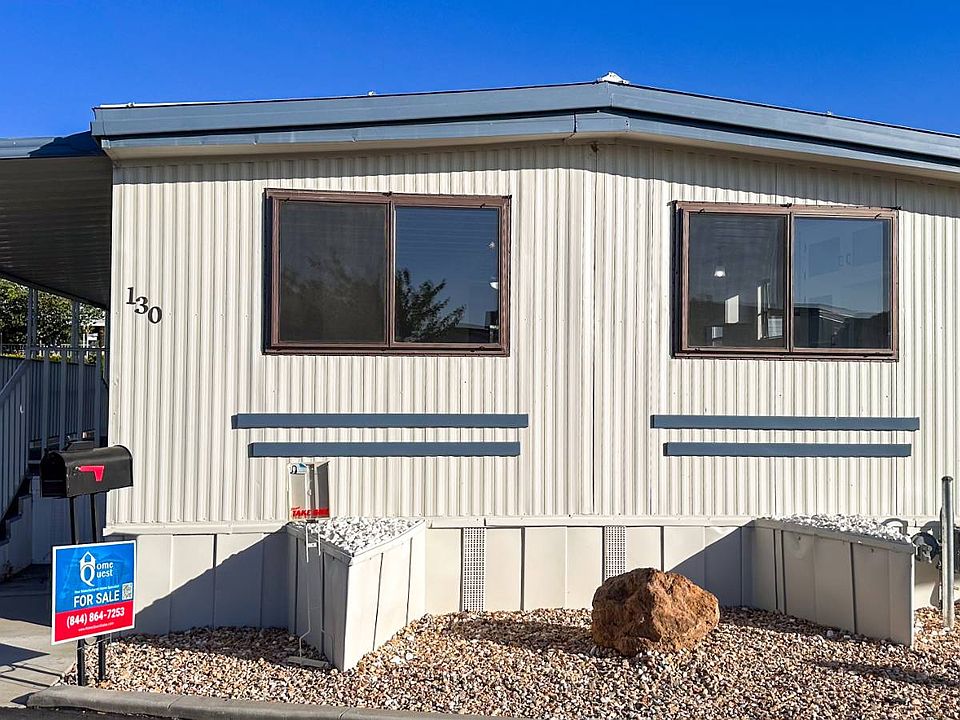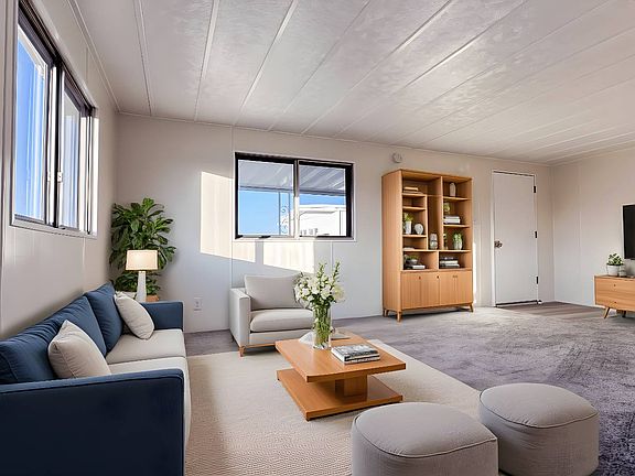 Beautiful 1970s home is ready for its new owners! Enjoy living in the peaceful community of Holiday Homes MH Park. This 55+ community is a great place to settle down. Multiple amenities are offered for residents from recreational facilities, to a pool & spa, and even a dog park! The home has a lot of natural lighting coming through the dual pane windows for energy efficiency. The kitchen area has been renovated, new kitchen appliances are included. Brand new carpeting and linoleum flooring throughout the home. The bathroom has been upgraded as well and a new evaporative cooler has been installed. Both bedrooms include walk-in closets for additional storage room. Home has tandem parking. Cheap lot rent! Affordable living! Easy to View! Contact us today for more information or to schedule a private viewing Disclaimer:- This image includes virtual staging. Furniture, decor, and enhancements have been digitally added and are not representative of the physical property. These modifications are for illustrative purposes only.