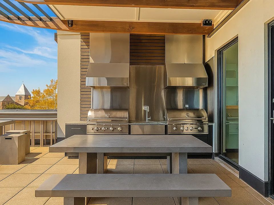 Whether you choose a studio, one, or two-bedroom apartment, you'll benefit from a host of convenient features and services that will make your day a breeze. These include skyline views of Downtown, granite countertops, hardwood-style floors, and friendly on-site management and maintenance teams ready to assist you. When you're ready to step out for some relaxation and recreation, come and enjoy our community amenities, including a rooftop terrace with an outdoor kitchen and firepit, a 24-hour fitness studio with free weights, and plenty of retail & dining options on the ground floor.