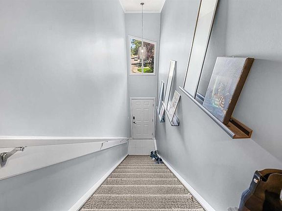 Tons of natural sunlightUpdated white cabinetryButcher block countertopsNew stainless steel fridgeStainless steel dishwasherSunlit dining areaWood fireplace
