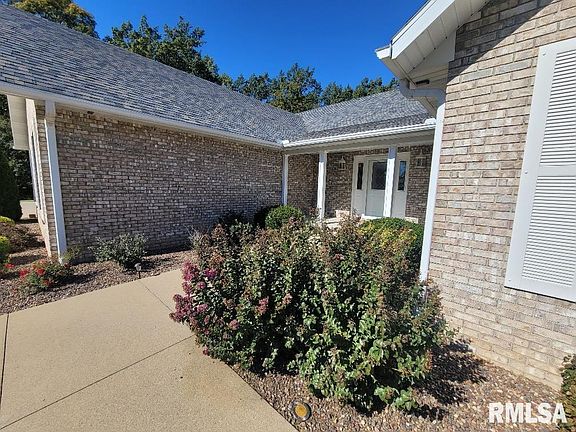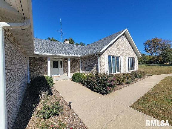 Stunning Brick Home on 5.98 Acres with Country Charm! Experience the best of both worlds with this beautiful brick home, nestled on 3.2 acres at the edge of town, offering a peaceful country feel. Designed for comfort & space, featuring a large living/dining room with expansive windows for natural light and views. Cozy up by the fireplace & unwind in this inviting space. Spacious eat-in kitchen with a center island, built-in china cabinet, & gorgeous solid wood cabinets offering ample storage & counter space. Stainless steel appliances add modern convenience to this classic design. Large family room with its own mini-split system for added comfort. Perfect for relaxing or entertaining, it also has an exterior door for easy access to the outdoors. Main bedroom retreat with two walk-in closets & an ensuite featuring a sunken tub. The room's large windows provide plenty of natural light & offer serene views. Two additional generously-sized bedrooms, both with large closets. Bath with walk-in tub. Abundant closet & storage space throughout the home, including the hallway closets & built-in storage in the large attached garage, which has heat & air. Landscaping & sidewalks surround the home, providing beautiful walkways & easy access around the residence. 1,200 sq ft pole barn/building offers a 15'7"x17'3" finished area ideal for an exercise room, man cave, or even a small business. It also includes a large office space, half bath & heat/air. Large shop area workbench & storage.