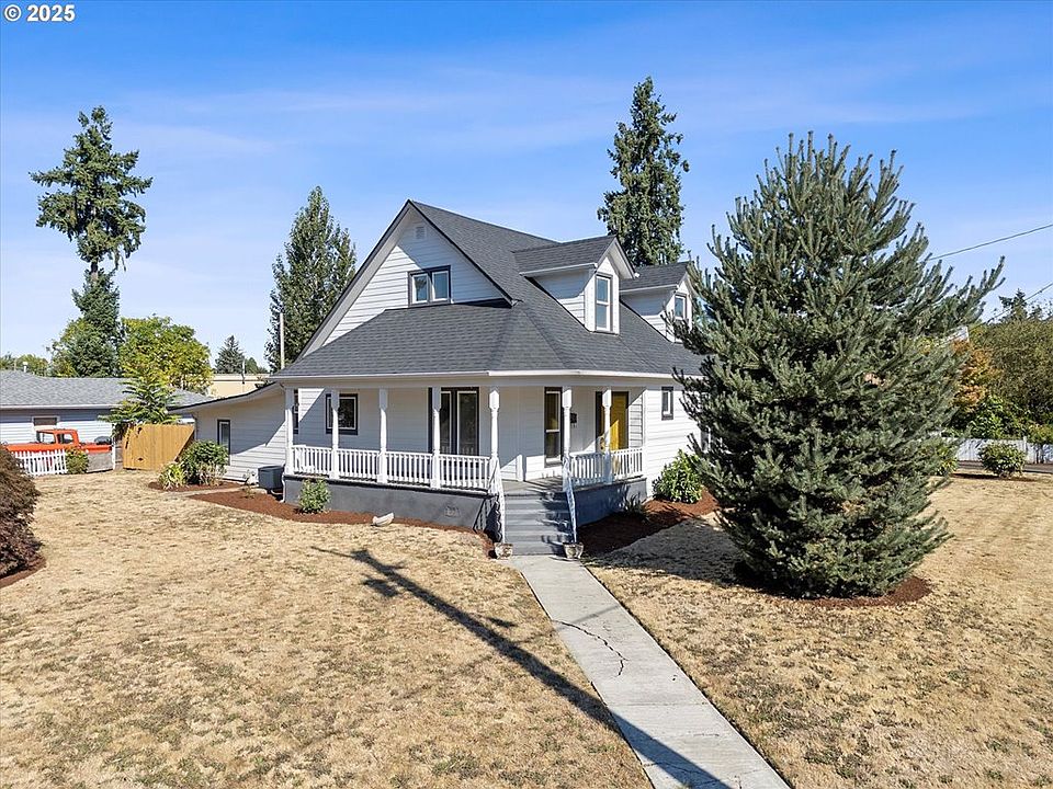 Farmhouse charm meets prime location in the heart of the George Fox University neighborhood! Once honored with the Newberg Chamber of Commerce Beautification Award, this home blends historic character with thoughtful updates and unbeatable convenience. Step inside and you’ll love the high ceilings, spacious family room, and a huge main level primary suite. The inviting covered front porch is perfect for relaxing, while the .28-acre lot with R2 zoning offers space and flexibility—garden, shop, or bring your imagination. Modern upgrades include air conditioning, newer vinyl windows, siding, and roof, plus a large driveway with plenty of off-street parking, ideal for your RV and an oversized 15' x 25' garage. Located just one block from George Fox University and a just minutes to Historic Downtown Newberg’s coffee shops, restaurants, boutiques, and tasting rooms, you won’t find a more convenient spot. With its charm, updates, and excellent rental potential, this property is a rare opportunity. And best of all no HOA! Don’t miss the great the possibilities for this home!
