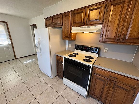 Welcome to this charming 2-bedroom, 1-bathroom duplex located in the vibrant community of Mustang, OK. This home boasts a fresh coat of paint and ceramic tile flooring, adding a modern touch to its cozy ambiance. The kitchen comes equipped with an electric stove, ready for your culinary adventures. The duplex also offers the convenience of stackable laundry hook-ups, making laundry day a breeze. The property is enclosed by a chain link fence, providing a sense of security. Parking will never be an issue with the convenient parking spaces available. Plus, the property is within walking distance to a local park, perfect for outdoor activities. As an added bonus, this home is zoned for Mustang schools, known for their quality education. Experience comfortable living in this 2 bed one bath duplex in Mustang!
