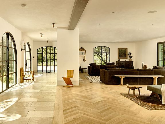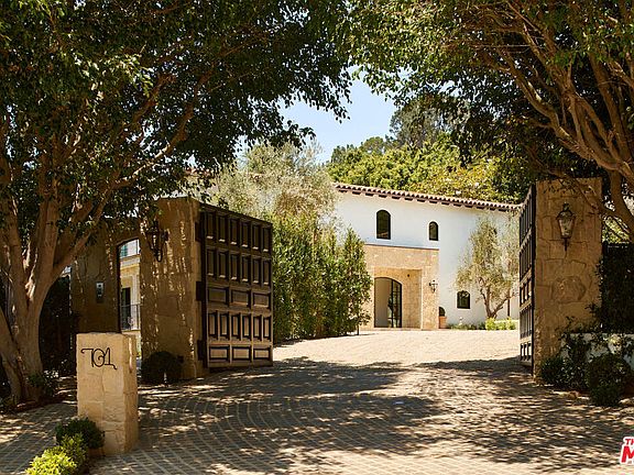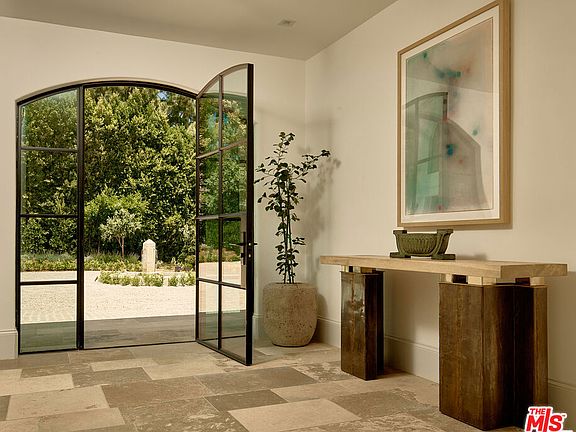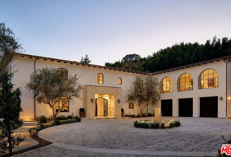 Set behind gates on nearly an acre in Lower Bel Air's coveted Platinum Triangle, this Contemporary Tuscan estate blends timeless European craftsmanship with modern California living. A circular motor court framed by mature trees and a French fountain sets a grand tone of privacy and sophistication. Light-filled interiors highlight artisan plaster walls, white oak floors, and an effortless connection to a central courtyard with olive trees, fire features, and a full outdoor kitchen an ideal backdrop for entertaining. The chef's kitchen boasts a striking Calacatta marble island, butler's pantry, and premium appliances, while formal dining and living rooms are enriched with antique fireplaces and steel-framed doors that open wide to garden and pool views. Amenities include a private gym with bath, a theater with separate entrance, and multiple indoor-outdoor lounges. Upstairs, the primary suite offers dual spa-inspired baths, custom closets, and a private terrace. Additional en-suite bedrooms, a family lounge with bar, and a great room extend the living space. On the garden level, a spacious bar and lounge open directly to the yard, creating a seamless setting for gatherings of any size. Surrounded by citrus groves, century-old olive trees, and landscaped gardens, this gated estate offers resort-style living in one of Los Angeles' most prestigious settings.