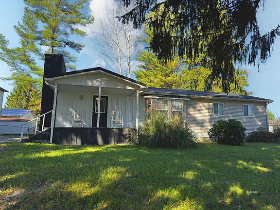 Take Me Out to the Ball Game! Situated across from the well-maintained Wellston Recreation Complex, this property offers a clean home with updates, and potential for rental income. The gravel driveway allows for multiple entry points. Catch a soccer game from the font porch (or baseball with some trimming). Step inside to find a spacious living room with gas fireplace, as well as space for an entertainment center, and plenty of seating. Because the home was purchased with a USDA loan, the fireplace was sealed before owner took possession; they have never used it. To your left is the eat-in kitchen with 2-year-old appliances, by the laundry area with updated half-bath. Down the main hall, find an updated full bathroom, oversized owner's bedroom with two closets, and a second bedroom, also with two closets. Stepping outside, find a storage shed and a garage with more than meets the eye! There is an apartment area above, doors sealed due to USDA requirements. Power is turned off and owner has never used water heater, but the potential is there to breathe life into this apartment for extended family or supplemental income! With cozy gas heat, metal roof, and LVP throughout, this home is quite the catch!