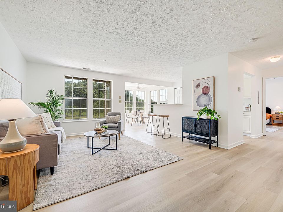 Welcome to The Orchard Overlook, a beautifully renovated 2-bedroom, 2-bathroom condo offering modern finishes, a private entrance, and a peaceful setting that backs to open green space. Step inside to find brand-new luxury vinyl plank flooring throughout, fresh paint, and a spacious open-concept living area. The fully remodeled kitchen features white quartz countertops, new stainless steel appliances, updated cabinetry, and a breakfast bar that opens to a sun-filled dining nook. Both bathrooms have been stylishly updated with new vanities, contemporary tile, and upgraded fixtures. The expansive primary suite includes a renovated en-suite bath, and the second bedroom is perfect for guests or a home office. Enjoy outdoor living from your private patio, and take advantage of the community’s three pools, clubhouse with fitness center, and scenic walking and biking trails, all for a low monthly condo fee.