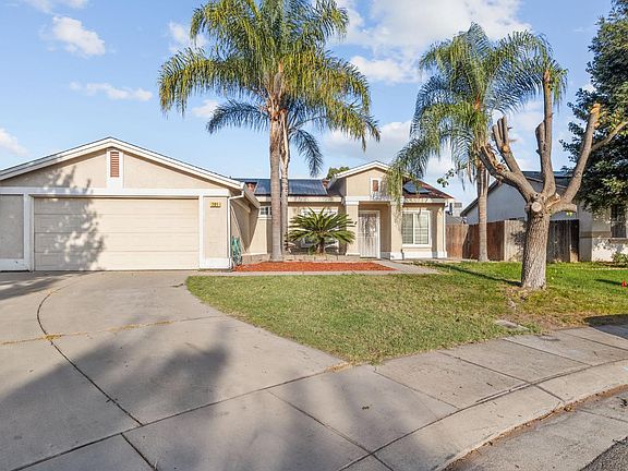 Welcome to your new home, nestled at the end of a serene cul-de-sac with the prestigious Rancho Del Rey Golf Course at the end of the street. This beautiful residence offers a perfect blend of comfort, space, and convenience! As you step inside, you'll be greeted by a sense of grandeur with a separate formal dining area and living room, perfect for hosting gatherings or enjoying quiet evenings with loved ones. Adjacent to the main living area, discover an office space adorned with elegant columns, providing an ideal setting for work. The heart of the home awaits in the comfortable kitchen. Featuring a stainless steel farm-style sink, a spacious kitchen island, epoxy countertops with stylish tile backsplash, and state-of-the-art stainless-steel appliances, this kitchen is a chef's delight. Each bathroom boasts a shower over tub, ensuring both style and functionality meet seamlessly. For added convenience, an indoor laundry room with cabinets offers a dedicated space for chores. Step outside, where a covered patio awaits providing the perfect spot for outdoor dining or simply unwinding after a long day. The expansive brick slab extends into a spacious yard to accommodate your outdoor activities!
