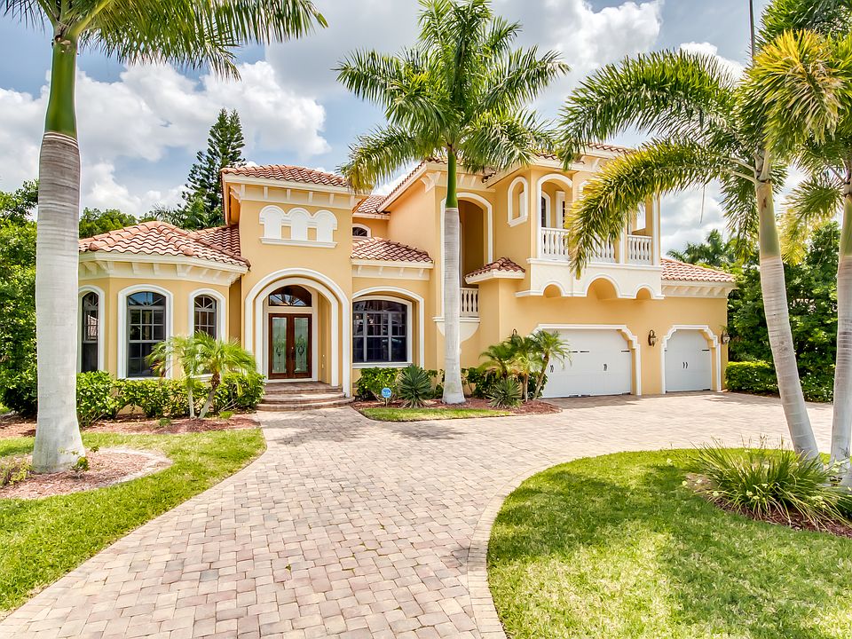 Located in Park Shore this custom built estate offers an abundance of space, and includes 4 bedrooms plus a den, 5 full and 1 half bathrooms, all spread over 4,791 square feet under air and 6,894 square feet total. Upgrades and other room notables are only fitting for an estate home of this magnitude, and include a dramatic double-door entry leading to 25 ft ceilings in the living room, a modern staircase, detailed crown moldings, and additional decorative features, plantation shutters, wood coffered and tray ceilings for added appeal, gourmet kitchen with stainless appliances and custom cabinetry, custom marble and wood flooring, pocket sliding doors that help bring the outdoor beauty in, an oversized upstairs family room with a wet bar and 2 wine coolers, a large 40 foot balcony for sunrise and sunset viewings, 3-car garage, newer mechanicals, and much more. The lanai is a true retreat, with a spectacular lap pool and spa with water features, an outdoor BBQ area, and lush landscaping. This home is within walking distance to Venetian Village and Park Shore offers a private beach association.