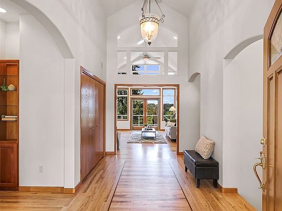 RARE double-parcel private estate in the heart of Bellingham just minutes to shopping, Downtown, and I-5. Pacific Northwest JEWEL on expansive half-acre, park-like, DOUBLE LOT in the heart of Bellingham. Architected landscaping elevates outdoor entertaining. Attention to detail and craftsmanship shows in inlaid hardwood floors and the custom cherry kitchen. Formal Living, Dining, and private office spaces exude elegance with curved walls of windows. Enjoy stunning sunsets over the City and Bellingham Bay from the Great Room and expansive west-facing deck. Zero-step entry and a main-level primary suite ensures ease of living. Stay active in the well-equipped home gym. Trailhead across the street offers endless outdoor exploration.
