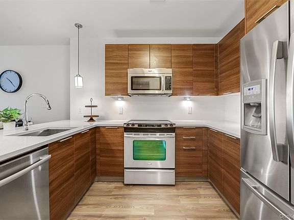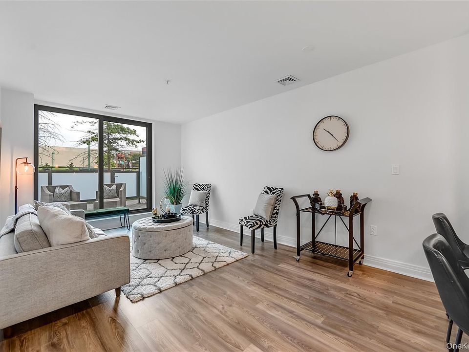 Welcome to Monarch at Ridge Hill in Yonkers! A Mini Metropolis within the suburbs of southern Westchester County. This spacious one-bedroom, one-bath condo offers stunning floor-to-ceiling views, two Juliette balconies for windows, washer and dryer, an open sleek kitchen with stainless steel appliances and Caesarstone countertops. Enjoy top-notch amenities like a gym, pool, jacuzzi, and sauna. Parking is $150/month, and your pets are welcome! With a shuttle to Metro North and the vibrant Ridge Hill Mall across the street full of shopping and dining, this is lifestyle location made easy.