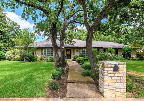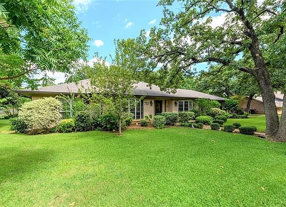 Immaculate 4 bedroom gem in Denton's desired Southridge neighborhood! .42 acres with established trees, landscaping, and tons of space to play or entertain inside and out! Charming entry leads to light and bright formal dining and living rooms. Spacious family room with vaulted, beamed ceilings, brick fireplace with gas logs and mantle. Updated eat-in-kitchen is gorgeous- chef's dream with tons of counter and cabinet space, double ovens. Great split bedroom floor plan features 3 full baths, and fully finished, ducted sunroom. Utility has room for second fridge, & oversized garage w ample storage. New roof, insulation, soffits, GDO, and updated electircal 2017, WH 2018, Main water line & gas line replaced 2019.