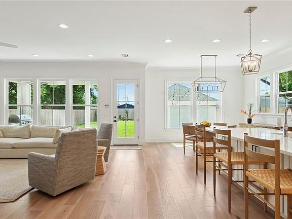 Exceptional Custom-Built nearly new (completed March, 2022) residence in fabulous Rio Vista neighborhood - FLOOD ZONE X. Designer touches throughout but also additional engineering items that aren't obvious, i.e., concrete slab built higher than architect spec'd. (owner is an engineer), reinforced attic to hold heavy equipment, ethernet throughout, etc. Wide plank white oak floors & open plan living spaces w/ 10' ceilings 1st floor & 9' on 2nd. Living Room has built-ins & a beautiful gas fireplace. Kitchen features an abundance of cabinets & ex lg island w/cabinet space. The classic white shaker cabinets & tile backsplash are timeless. Side door enters into a Butler's Pantry/Mud Room w/ counter & cabinet space. 1st Floor Primary Suite includes a large walk-in closet, water closet, double vanity, soaker tub & shower. Also on the first floor is an additional bedroom & guest bathroom. There are 2 laundry rooms - one on lower & upper levels. All appliances remain w/ home. Office spaces are tucked away in several locations & home is internet & cable ready. Upstairs den can be used for playroom, exercise room, Yoga, etc! There are multiple attics - walk in & pull down stairs. Rear covered patio features an outdoor kitchen & large yard - plenty space for pool & more. Detached garage has confetti poured epoxy floors, work space & more storage. Sellers are relocating for job & only reason they're moving. Relo company requires buyers have a Pre-Approval submitted with offer or if cash, Proof of Funds. Crescent Title will close sale. Curtains are excluded. This cul-de-sac has electric, AT&T and Cox underground connections. A rare opportunity to purchase a quality custom built home in Rio Vista! Between the home, attics & garage, you won't lack storage! Easy access to I-10 & all metro areas.