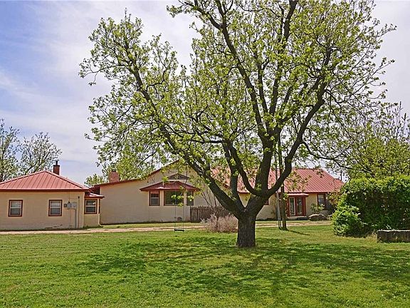 This unique 49-ac property, adjacent to a thriving small town, has amenities that must be seen to be appreciated. In the spacious home you will enjoy a large entertaining area with beautifully rocked fireplace, separate dining room, kitchen with built-in appliances, pantry, laundry room, mud room, three large bedrooms, two full bathrooms, abundant closets and storage. A sun room and bonus loft top the list. Outside is a secluded patio, native landscaping, detached full office, triple carport and cellar. On the acreage you will find a 95'x40' metal barn with roll up doors, hay barn, storage building, two wells with a center pivot, working pens, cross fences with alleyways, orchard and garden areas.