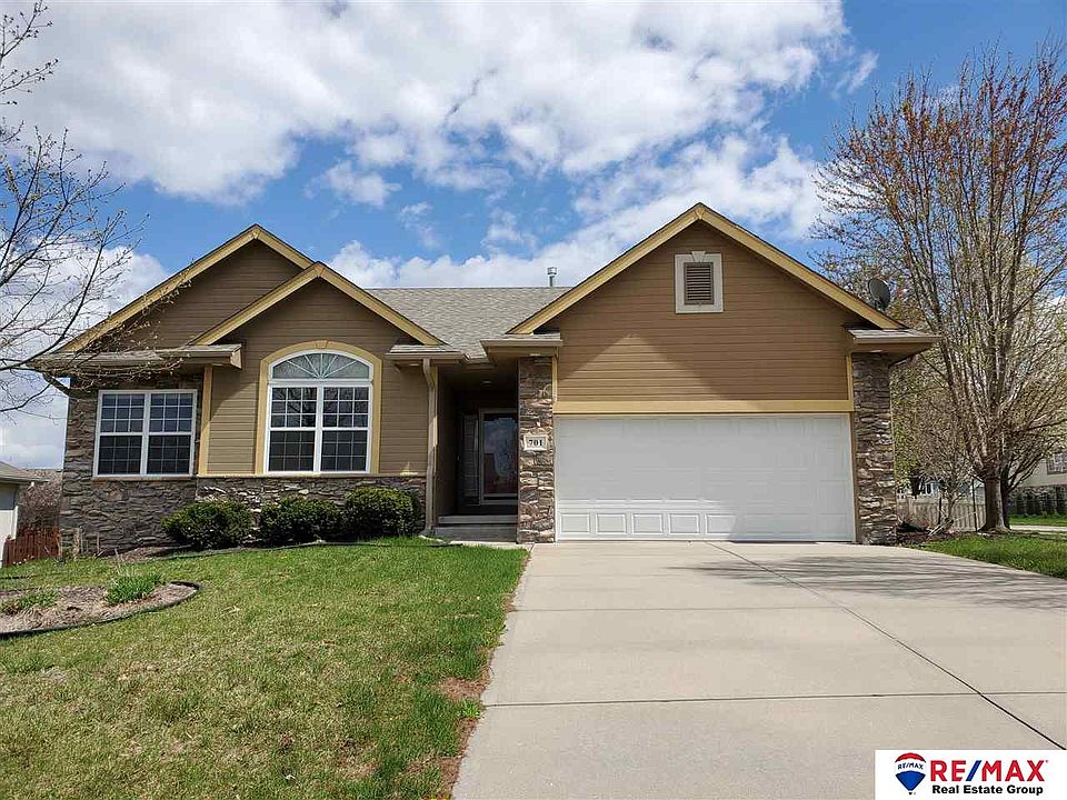 Beautiful ranch home on large corner lot in Papillion! New carpet throughout. New flooring in kitchen and dining area. Open floor plan with plenty of space. Kitchen offers granite counter tops, large pantry, and an oversized deck. Main floor laundry as a potential mud room off the garage entry. MBA offers extended tile flooring with double sink counter tops. Large basement floor plan with custom tile floors. Additional room for an office. Stunning stone brick step-in shower in lower level bathroom. Fenced yard, radon & water softener. Come see!