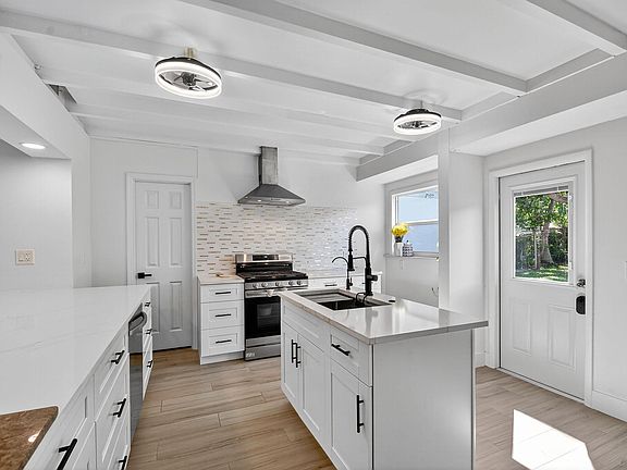 Beautifully Remodeled 2 Bedroom/2 Bath Single Family with 1 Car Garage, Plus a Studio Apartment with a Newly Remodeled Kitchen, Bath Perfect for a Lucrative AirBnB/Sort-Term Rental, Family or Long Term Rental of $1,400 Plus a Month. The Moment you Enter, You are Greeted By an Open, Sunlit Floorplan that Feels Spacious and Inviting.Designer Kitchen is a Chef's Dream, Showcasing Quartz Countertops, Shaker Cabinets,Stainless Steel Appliances Plus a Natural Gas Oven Perfect for Entertaining or Family Gatherings.Every Detail has Been Updated, Roof, A/C,Impact Windows, Electrical Panels, Lighting Fixtures, and Stunning Spa-Inspired Bathrooms with Luxury Finishes.Rich Plank Flooring Tying Together Modern Coastal Elegance. Fenced Backyard, Large Enough to Add a Pool, Park a Boat or RV.