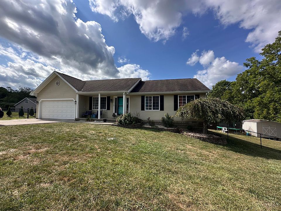 Charming ranch home on a corner lot with 3 bedrooms and 2 full baths. Featuring an open living design with vaulted ceiling and abundant natural light, this home has seen numerous updates in the last four years. The kitchen and laundry offer new cabinets and backsplash, while the small deck was enclosed with a roof two years ago and expanded to a larger open deck with privacy fencing. The entire yard is fully enclosed with woven wire fencing and entry gates. Additional upgrades include a new garage door and screen door. Enjoy the attractive landscaping, concrete driveway, covered front porch, and quiet neighborhood setting. Addressed on Elm St. but fronting Cheryl Lane.