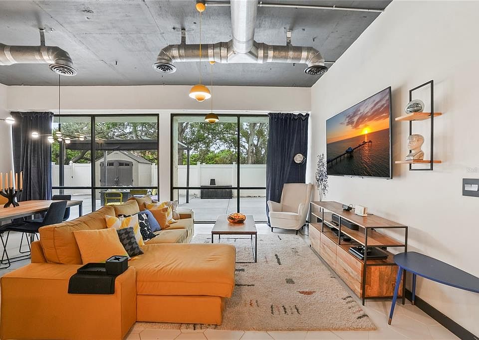 Welcome to this stunningly renovated oversized 3-bedroom, 2-bath residence that perfectly blends modern comfort with industrial-inspired design. High ceilings, exposed ductwork, and attention details create a stylish loft-like atmosphere while maintaining a warm, inviting feel. As you step inside you'll discover an open-concept living space drenched in natural light. The gourmet kitchen is a true showpiece, boasting two-tone cabinetry, a large butcher-block breakfast bar, and premium stainless steel appliances. Retreat to the oversized primary suite with ample closet space and a spa-inspired ensuite bath. The additional bedrooms are generously sized—perfect for guests, a home office, or creative space. Other highlights include: Polished concrete ceilings with exposed ducts; Custom lighting and hardware throughout; Thoughtfully designed open layout ideal for entertaining; In-unit laundry and ample storage. This is the largest unit in the building with a HUGE patio that is double the size of any other unit. Conveniently located near local dining, shopping, entertainment, and the Famed Clearwater Beach. This home offers the perfect combination of modern design and everyday livability. Experience the best of urban living—schedule your private showing today!