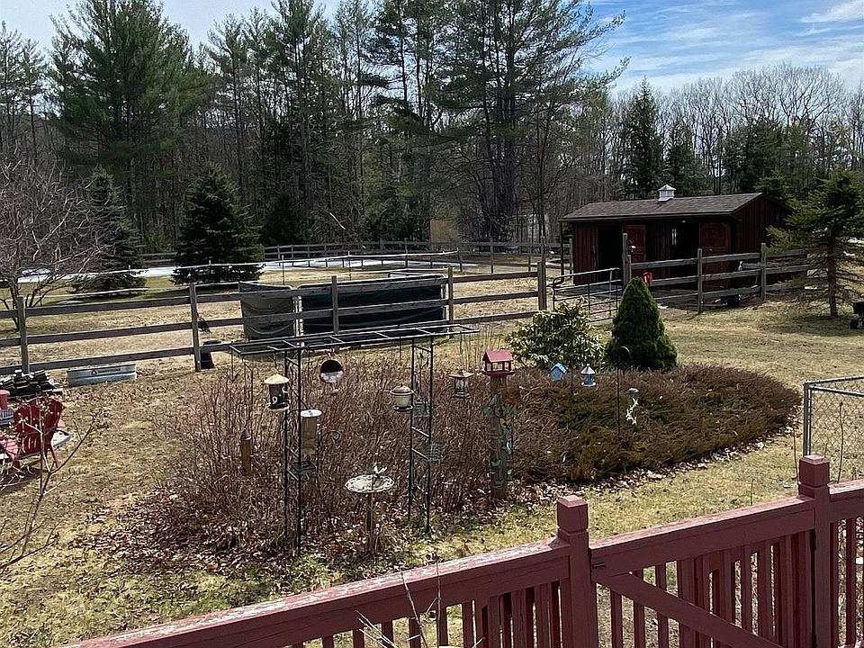 Bring your horses!!  Two stall barn, two fenced in paddocks.  Oversized two car garage has space for a tack room and loft storage for hay.  Horses not your thing? This ranch offers great entertaining space.  Large eat in kitchen with island, 2-3 bedrooms, primary bedroom has 3/4 bathroom with walk in shower and walk in closet.  Full bathroom offers a jetted tub. 3rd bedroom could be an office or bedroom.  Hardwood floors throughout.  Covered front porch with trex decking.  Back deck has trex decking plus a Sunsetter  crank out awning and sliders to the kitchen.  Wainscotting in bedrooms, living room and hallway.  Did I mention the prep/butler kitchen?  Great for entertaining or the avid gardener. East Coast metal roof installed 2020. Garden space and flower gardens just waiting to bloom with color.  Basement is partially  finished with brick hearth & woodstove and a bonus room/craft space and separate storage room.  Firepit to enjoy s'mores or casual gatherings to star gaze.  Fenced in dog area.  Lets not forget the town of Bristol offers a town resident only sandy beach on picturesque Newfound Lake.   Profile Falls trails are a short distance away for horseback riding trails or hiking.   Showings delayed till Open House Saturday April 15th noon-2pm and Sunday April 16th noon-2pm as well.