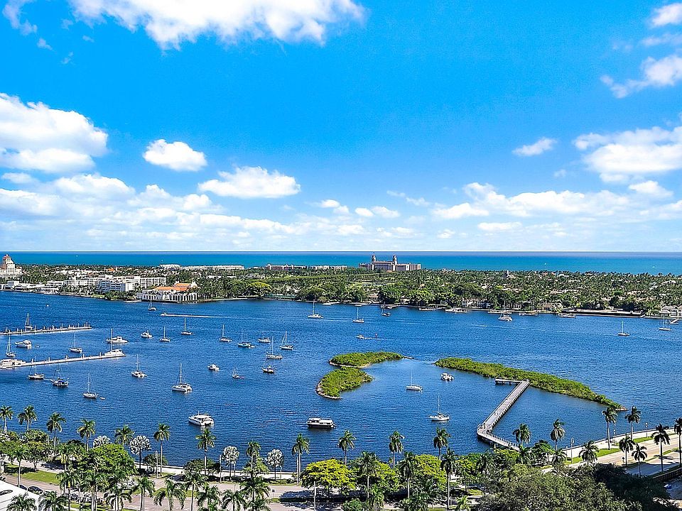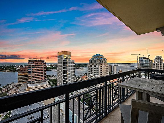 Breathtaking views high above downtown West Palm Beach. This 20th floor 3BR+ penthouse captures sweeping views of the Intracoastal, Palm Beach & the Atlantic Ocean. Thoughtfully designed for comfortable & sophisticated daily living & entertaining over expansive water views. Enjoy a graciously scaled open living room w/ a custom bar, 11' floor-to-ceiling glass & an open chef's kitchen. PH includes 2 premium parking spaces w/EV charging & climate-controlled storage w/electric & wine coolers. Building amenities include a rooftop pool deck w/ grills, dog park, & TVs, 24 hr security, plus a 5th floor gym, club room, theatre, & spa w/ steam & dry saunas. No upcoming assessments. Seller open to selling w/ furniture. Moments away from downtown WPB & PB, PBI Airport, & world-class dining & retail.