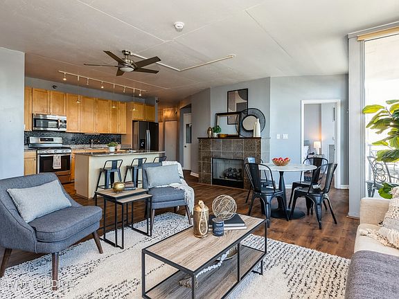 Step inside this beautiful Wells Street Tower unit with impressive east-facing views of the city! Located right on the cusp of the incoming "78" development, this is a bustling area which is only getting hotter! When you walk into this home, you will immediately enter a foyer area which features a good-sized coat closet, and is adjacent to the laundry closet with full-size, side-by-side washer and dryer. A bit further to enter the spacious open living/dining/kitchen area - flooded with natural light during the day, and boasting quintessential Chicago cityscape views by night. The large living area smartly separates the 2 enclosed bedrooms, and flows naturally into an open-concept kitchen with granite countertops and a generous island with eat-in breakfast bar. The gas fireplace (with tiled mantle) provides a cozy retreat during the cooler weather. Previous owners opened up the short hall that ran from the primary bedroom to the bathroom, giving this home more functional square footage than most other units in the "02" tier (sellers had used this extra space as an office nook). Step out to your private balcony and sip your morning coffee as you watch the sun rise! Both bedrooms are enclosed completely, and feature beautiful eastward views of the city and even a bit of the lake. The primary suite bedroom also boasts a large walk-in closet - storage abounds throughout this unit! Every resident in this building can take advantage of it's countless luxury amenities: 24-hour door staff, sun deck, fitness center, yoga room. This building has a great, responsive & healthy association! Walking distance from many terrific dining and night life options, parks, the south bank river walk, dog parks, groceries and a short distance to all major nearby interstates. Includes additional storage space. Deeded, covered parking space is also available. Book your tour today!