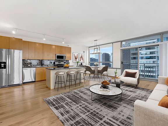 Welcome to 701 S Wells St, Unit 2301, a rare Northeast corner unit in the sought-after Wells Street Tower. This bright and spacious two-bedroom, two-bathroom condo offers breathtaking panoramic views of the city skyline from the north, east, and west. Step into a modern open-concept layout featuring a large living room with a cozy fireplace and floor-to-ceiling windows that flood the space with natural light. The open kitchen is designed for both style and function, boasting a large central island with breakfast bar seating, granite countertops, and stainless steel appliances-perfect for cooking and entertaining. A private balcony provides a stunning vantage point to take in the iconic city views. The primary suite is a true retreat, complete with a slate spa-like bathroom, double vanity sinks, a separate jetted soaking tub, and a walk-in shower, along with a spacious walk-in closet. The generous second bedroom offers ample closet space and easy access to a full guest bathroom. Additional highlights include hardwood floors throughout, an in-unit washer and dryer, and abundant storage. Wells Street Tower offers top-tier amenities, including a recently renovated lobby and amenities floor (2022/2023), a stylish party room with a terrace, a yoga room, a full gym, a library, a bike storage room, and 24/7 doorman service with onsite management and an engineer. Located in the heart of the South Loop, this home provides unparalleled convenience. Enjoy being just steps from Grant Park, the Riverwalk, and Lake Michigan, with an array of top retailers such as Target, Mariano's, Jewel, Whole Foods, Trader Joe's, and Farmers Markets nearby. Dining and entertainment options abound, and the area offers seamless access to public transit, Union Station, LaSalle Metra, and major highways. A deeded garage parking space(Extra wide can park 2 cars) is available for purchase. This is city living at its finest-schedule your showing today! Click on 3D Tour to walk through unit
