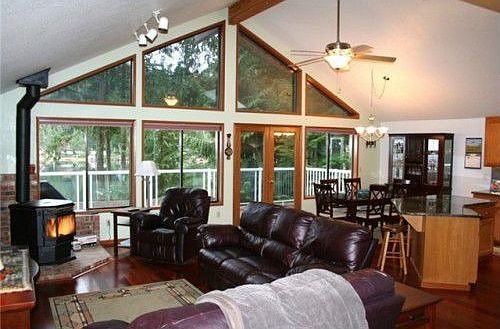 Paradise on the lake! This expansive home boasts an open floor plan with gorgeous views from both levels. Many updates including granite counter tops, stainless appliances, Brazilian cherry hardwood floors & more. Entertain in oversized great room with wet bar & pool table. Grass lawn leads you to open & easy lake access, new private dock & boat house with boat lift. Ideally located on the central, deep and quiet part of the lake. Two-car garage plus plenty of extra space for your summer toys!