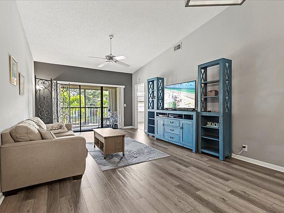 This is a stunning 2 bedroom, 2 bathroom, 1,200 square foot, second story unit with a screen enclosed balcony overlooking a scenic lake and fountain. This beautiful condo boasts a split floor plan, vaulted ceilings, updated kitchen, and cable TV, high-speed internet, and water are included with the HOA. The balcony provides cool shade from about 10:00 am on. Full accordion shutters provides peace of mind allowing you to securely enjoy this luxurious unit redone with modern contemporary finishes, the best views in the community, and unbeatable proximity to all things Palm Beach Gardens and South Florida have to offer. Mere minutes to I-95, Gardens Mall, Abacoa, Alton, and the most beautiful beaches in the world. Your piece of paradise awaits.