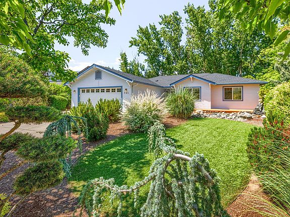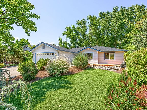 Located in the Oak Knoll Subdivision, this nicely updated single level home is ready for its next owners! Situated on a cul-de-sac, the home sits on a level lot with a beautifully designed & landscaped front yard showcasing a lovely recirculating water feature. Enter the home and you'll find an open living room with vaulted ceilings and wood beams, decorative rock wall details, a gas fireplace and solid hardwood flooring. The generous kitchen features granite countertops, bar eating area and a kitchen island. The primary suite is private towards the backyard and has a remodeled bathroom featuring a jetted tub, tiled shower, beautiful cabinetry, dual sinks & a walk-in closet. There's also two bonus rooms off the main living area that can be used as an office, craft room or reading nook. The generous deck allows you to enjoy the backyard featuring mature decorative trees. Plus a fully owned solar array and access to the community including pathways, a pond & more!