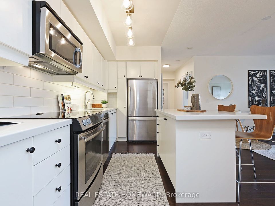 Welcome to Portrait Condos, where comfort meets convenience in this spacious 2-bedroom + enclosed den, 2-bathroom home. Offering nearly 1,100 sq. ft. of smartly designed living plus a full-length 185 sq. ft. south-facing balcony, this suite delivers both space and style. The open-concept living and dining area is bright and inviting, with large windows that bring in natural light and frame peaceful garden views. The modern kitchen (renovated in 2022) is the heart of the home, featuring stainless steel appliances, granite counters, a touchless faucet, tile backsplash, and a centre island perfect for cooking, working from home, or hosting friends. The enclosed den, with a proper door, makes an ideal home office, reading nook, or private guest room. The primary bedroom offers a walk-in closet and 3-piece ensuite, while the second bedroom is generously sized and equally bright. Added features include fresh paint, remote-controlled custom blinds, and a premium oversized parking space with direct access to a private locker room, a rare and practical bonus. Portrait Condos is 100% smoke-free and recognized for its quiet, well-managed community. Amenities include 24-hour concierge, gym, rooftop terrace, party room, and plenty of visitor parking. The location is hard to beat. Steps from Tim Hortons, Metro, and Starbucks, with Sheppard West Station a short walk away. Quick access to Allen Road, Highway 401, and Yorkdale makes commuting or shopping stress-free. If you're looking for a bright, well-cared-for condo with thoughtful upgrades in a location that truly works, this suite is ready to welcome you home.