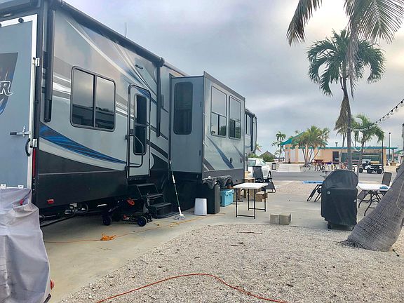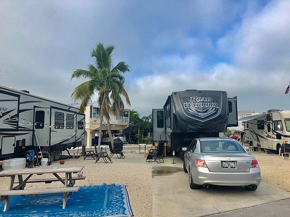 Desirable pull thru RV lot in Venture Out, a gated community on Cudjoe Key. Located right across from the POOL and MARINA, for fantastic open water views and centrally located. The lot size is 35 x 70 and features a concreted pad & driveway, picnic table and tropical plantings. This lot is also buildable for a 24 x 36 manf. home or enjoy as an RV lot. Purchase lot 301 (MLS#584114) next door for $200,000 and own two lots!