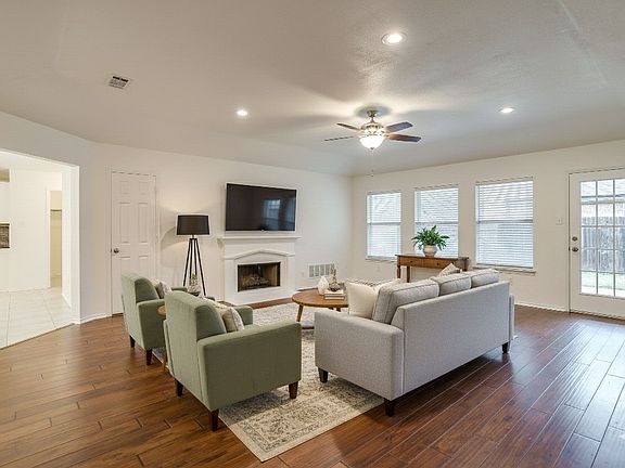 Christmas lights are VS but can be negotiated! Say Hello and Welcome Home to This Wonderful Corner-Lot Gem in a Highly Desirable, Established Neighborhood! Priced to sell! Situated on a spacious corner lot, this beautifully maintained home offers an open floor plan and thoughtful upgrades throughout. The inviting living area features recessed lighting, a cozy gas fireplace, and rich hardwood flooring, creating the perfect setting for everyday living and entertaining alike. The updated kitchen is a standout, complete with upgraded cabinetry, granite countertops, stainless steel appliances, recessed lighting, a tile floor, and a generous pantry providing both style and functionality. You’ll love the large primary suite, offering dual sinks, an extra storage closet, a relaxing garden tub, a separate shower, a linen closet, and a roomy walk-in closet. The split floor plan adds privacy, with three additional bedrooms featuring oversized closets and an upgraded secondary bath. Need a spot for a home office or playroom? This home has flexible space to fit your lifestyle. And yes, every bedroom has a ceiling fan! Major updates include a new HVAC system in 2023, water heater in 2021, and a new garage door, giving you peace of mind. With easy access to I-35 and an abundance of shopping and dining options nearby, convenience is at your doorstep. Virtually staged photos to give you a feel for how the space can work. Seller is offering concession for carpet replacement!