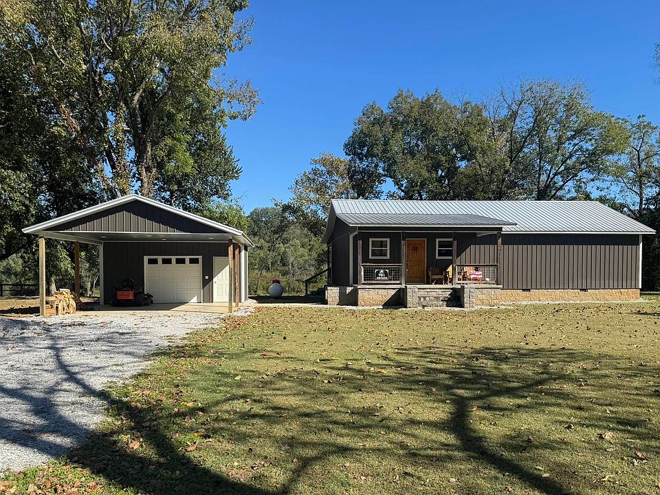 Riverfront livingSpacious utility roomFull-house mini-split systemDetached carportStunning metal ceilingsPropane wall heaterCozy wood-burning stove