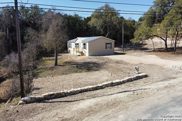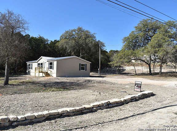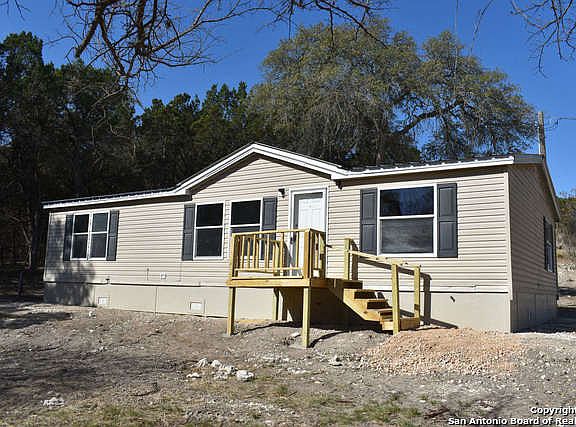 HIGHLY MOTIVATED SELLER. Like new 3/2 double wide MH on 0.69 country acres! Privacy and quiet country living await. 1232 square foot, 3 bed/2 bath home sits on the edge of your own private forest. nice and shady in the summer. Home is super high quality updated and refurbished. NEW metal roof, NEW laminate flooring, NEW cabinets, countertops, vanities and stove/micro, NEWER A/C unit, fresh paint thru out. All plumbing and electrical systems updated and improved. Foundation retrofitted. hardi skirting attached to 4x4's set in concrete! foundation has 2 access doors and proper venting. extreme attention to detail in the upgrade/rehab. HOA offers pool, clubhouse and more- very reasonable restrictions. 7 miles to town- CVS pharmacy, shopping, churches, bars, schools. 30 minutes to Kerrville, 45-60 minutes to SA. New Dollar General 6 miles away! Convenient but secluded. Invest now before prices go up! - booming area. Amazing op Home currently rented.