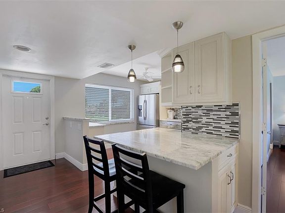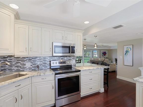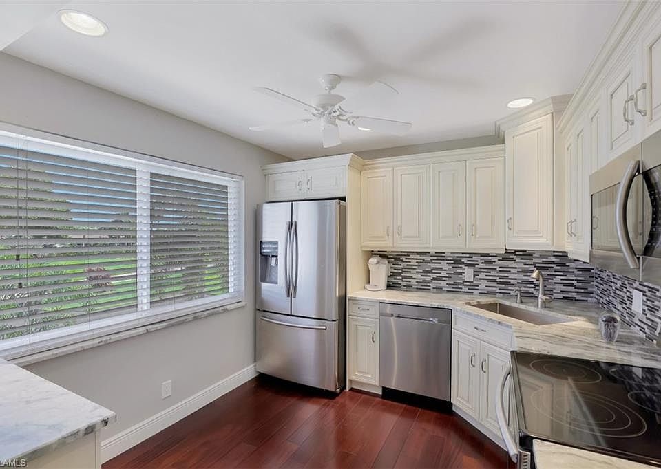 C. 18061 - Open plan featuring beautifully remodeled kitchen with granite countertops, custom cabinets and decorative backsplash. Stainless appliances. Hardwood floors. Spacious lanai looks out over the spectacular views of the 17th fairway/green and pond with a lighted fountain and boasts jewel-like sunsets. High impact glass windows and sliders and impact front door. Bundled golf. Walk both 18-hole courses. Par 70 and Par 55. No greens fees. Resort style amenities. 3 miles to Gulf beaches and downtown Old Naples. Glades Golf and Country Club is a certified Audubon Society. (Agents see confidential remarks)