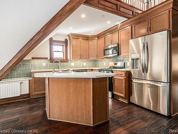 Welcome to Canfield Manor! This lovingly restored 1894 built home has been fully renovated with modern details while keeping many original features and esthetic throughout. Set on historic West Canfield, this charming brick street is a national historic district and surrounded by some of the best shopping, dining & entertainment the city has to offer! Several floorplans are available! Unit 5 features a bi-level layout with 2 bedrooms and 1.5 bathrooms. Enjoy vaulted 15 foot ceilings w/ skylight, original doors, woodwork, flooring and period correct light fixtures & hardware throughout. The kitchen includes all new stainless Frigidaire appliances, granite countertop w/ bar seating & Krauss bar sink, gorgeous Kit Kat Forest green backsplash, wood soft-close cabinets and a large pantry! The bathroom features a floor-to-ceiling tiled shower with euro-style glass door as well as tile floor & tile wainscoted walls w/ marble coping. The loftd bedroom has a Velux balcony skylight with views of downtown in the distance. Brand new in-unit washer & dryer. See the full list of features + details! The back of the home offers a private park-like setting with a waterfall pond, several ornamental trees and private access to the gated & secure parking lot. Close to an array of standout dining + shopping options like Vecino, SheWolf, Selden Standard Warda Patisserie, Dirty Shake, Jolly Pumpkin, La Feria+Cata Vino, Shinola, City Bird, Nest, Third Man Records, Bon Bon Bon. The list goes on!